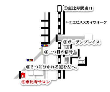 YEBISU SKY WALKを経由して、当サロンまでは徒歩12分。
